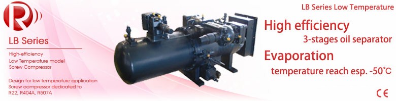 HANBELL LB series semi-hermetic screw compressor is developed especially for low temperature application such as refrigeration system, freezers, IQF, processing cooling machine and ice storage system. The evaporation temperature can reach -50℃ ( R404A & R507 )